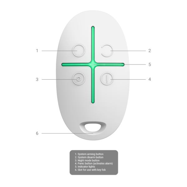 - Funções: Arme, desarme, arme parcial e emergência (SOS)