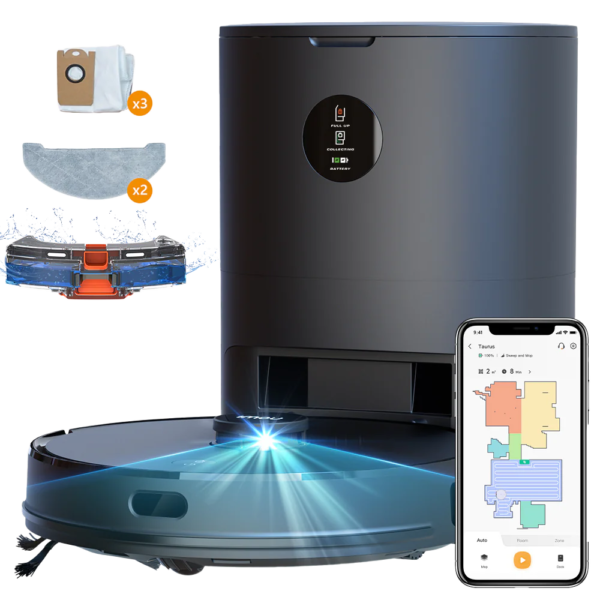 - Modo inteligente para varrer, aspirar e passar a esfregona